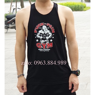 Áo ba lỗ có mũ nam A.203 chất cotton màu sắc đơn giản in chữ : no pain no gain" cho anh em có động lực chơi thể thao