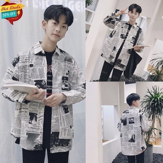 Áo Sơ Mi Tay Dài Dáng Rộng Hoạ Tiết Giấy Báo Thời Trang Xuân Hè