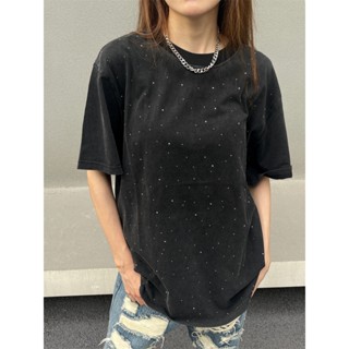 Ch-the Xu Hướng Thời Trang Mới Nhất Áo Thun Tay Ngắn Cổ Tròn Đính Đá Kim Cương Nóng Bỏng vintage