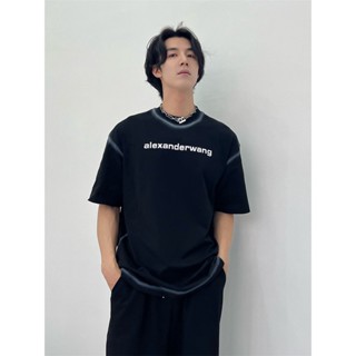 Ale-xander-wang - Vải Gạc In Màu Thuần Khiết Thủ Công Mới Nhất Áo Thun Tay Ngắn In Chữ Trước Ngực Thời Trang Cho Nam Và Nữ