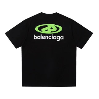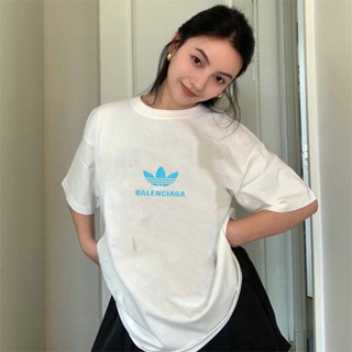 B-l-c-g x Áo Thun Tay Ngắn In Chữ Màu Xanh Dương Cỏ Ba Lá Mới Ykkews