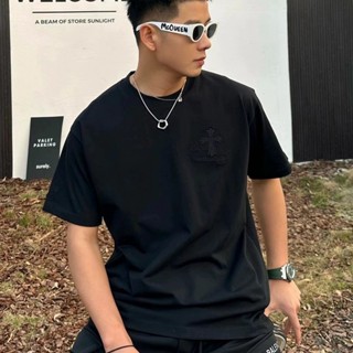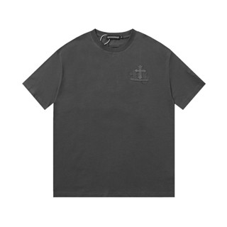 Chr-come88-áo Thun Tay Ngắn Cổ Tròn Họa Tiết Thêu Chắp Vá Công Nghiệp Nặng