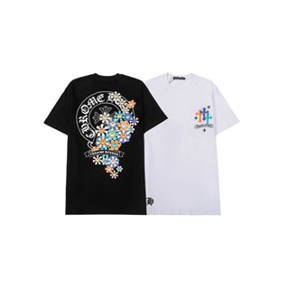 Chrome- Áo Thun Tay Ngắn Dáng Rộng 349 Ngắn In Họa Tiết Ngựa / Hoa / Mặt Cười Sanskrit Màu Cầu Vồng Cho Nam Và Nữ