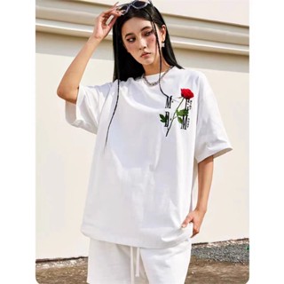 Áo Thun Tay Ngắn Dáng Rộng Thêu Họa Tiết Hoa Hồng Ba Chiều Phong Cách Đường Phố Mỹ Thời Trang Mùa Hè Cho Nam Và Nữ
