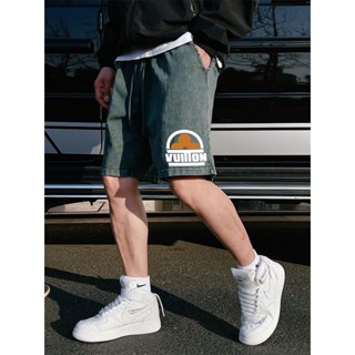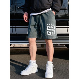 L & V & Quần Short In Chữ Cái Rửa Công Nghiệp Nặng Cổ Điển Giặt Nước Rửa Được Xu Hướng Giản Dị