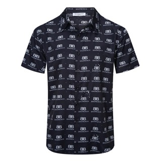 Mới Áo Sơ Mi Tay Ngắn In Họa Tiết Trắng Đen Phong Cách Đường Phố Cổ Điển