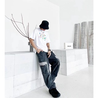 Áo Thun Loe & We88- Áo Thun Tay Ngắn Giả Túi Giả Thêu Họa Tiết Thời Trang Đường Phố Unisex