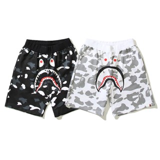 A BATHING APE Quần Short Vải cotton In Hình Đầu Cá Mập Họa Tiết Rằn Ri Hai Mặt Cá Tính