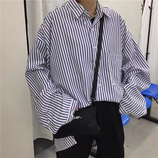 > Áo Sơ Mi Tay Dài Thiết Kế Dáng Rộng Họa Tiết Kẻ Sọc Phong Cách Hàn Quốc Thời Trang Xuân Hè Cho Nam