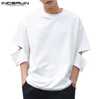 INCERUN Áo Thun Tay Ngắn Cổ Tròn Dáng Ôm Thời Trang Trẻ Trung Cho Nam