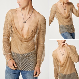 Áo Thun Lưới Tay Dài Trong Suốt Cổ Khoét Sâu Thời Trang Cho Nam