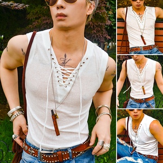 Áo Ba Lỗ Nam Cổ Chữ V Màu Trơn Phối Tua Rua Phong Cách Vintage