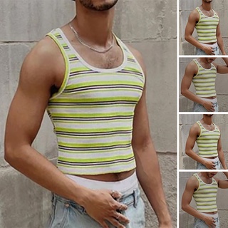 Áo Tank Top Sát Nách Cổ Tròn Kẻ Sọc Cá Tính Cho Nam