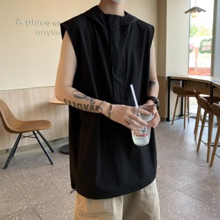 Áo Thun Sát Nách Có Mũ Plus Size Chất Liệu Lụa Lạnh Mỏng Nhanh Khô Thời Trang Mùa Hè Cho Nam