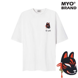 Áo Unisex MYO Vải Cotton Thêu Kitsune Trắng