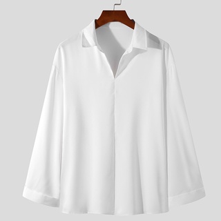Áo sơ mi nam nữ form rộng cổ V Hàn Quốc, Sơ mi trắng unisex dài tay không cúc vải lụa VINTINO