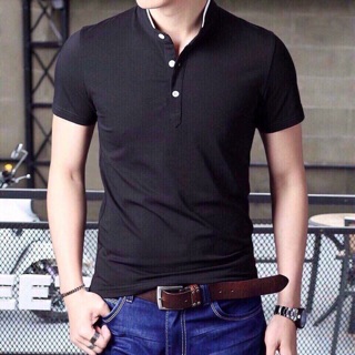 Áo thun nam cổ trụ phối màu ngắn tay nút nổi