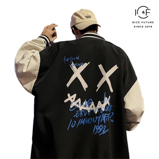 Áo khoác bóng chày IFNICEFUTURE dáng rộng ghép màu phong cách Hồng Kông cho nam