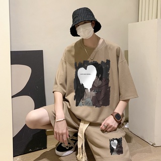 Bộ Đồ Thể Thao Áo Thun Tay Ngắn Cổ Tròn Phối Quần short Dáng Rộng Kiểu Hàn Quốc Thời Trang Cho Nam