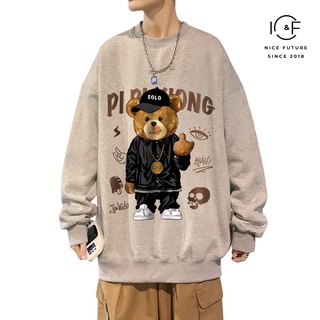 Áo sweater IFNICEFUTURE bằng cotton dáng rộng cổ tròn in hình thời trang phong cách đường phố Hong Kong