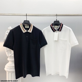 Áo phông nam nữ Premium Cotton in hình rắn xanh khoang đen trắng GG phối thêu vạch ống tay cao cấp AP114P