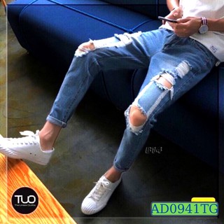 Quần jean nam tenji màu xanh rách gối chất bò cao cấp co dãn 4 chiều cực đẹp, quần rin nam QDJ0941 Nhiều mẫu mới