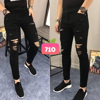 Quần jean nam màu đen rách gối chất bò cao cấp co dãn 4 chiều cực đẹp, quần rin nam QDJ710 Nhiều mẫu mới