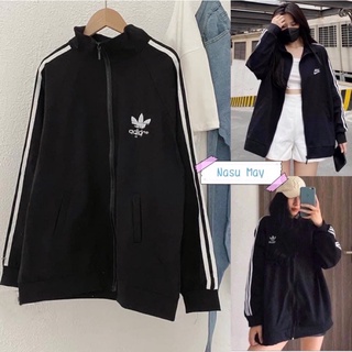 Áo Khoác BomBer Form Rộng Nam Nữ Sọc Tay Áo Nỉ Khoá Kéo Giữa Màu Đen A.didass/N.ike