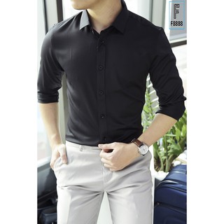 Áo sơ mi dài tay áo kiểu đẹp công sở nam hàn quốc F8888 Màu Đen Cổ Cứng