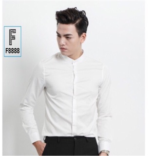 Áo sơ mi dài tay nam F8888 kiểu công sở hàn quốc loại Cổ tàu màu Trắng