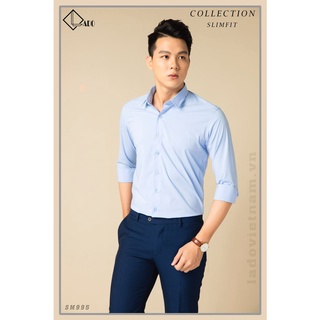 Áo sơ mi bamboo trơn màu xanh nhạt dài tay co giãn nhẹ LADO 995