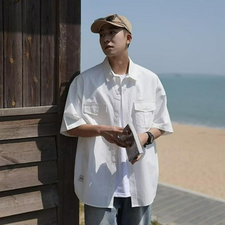 Áo Sơ Mi Ngắn Tay Dáng Rộng Màu Sắc Đơn Giản Phong Cách Nhật Bản Size M-2XL 2 Màu Lựa Chọn Cho Nam