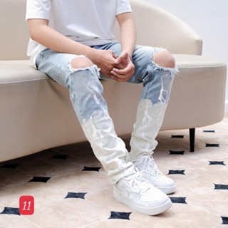 Quần jean nam màu xanh kiểu rách cao cấp, Quần dài jean nam chất liệu jean co giãn shop-Black fashion shop m11
