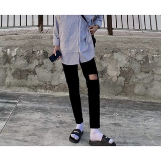 Quần Jean Nam Skinny Màu Đen Rách 2 Bên Gối Vuông Đơn Giản Năng Động Bảnh Trai 847