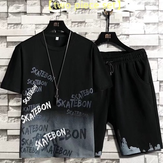 Set Đồ Thể Thao Hai Mảnh Gồm Áo Thun Tay Ngắn Dáng Rộng Phong Cách Hàn Quốc Thời Trang Mùa Hè Cho Nam Giới Size M-5XL