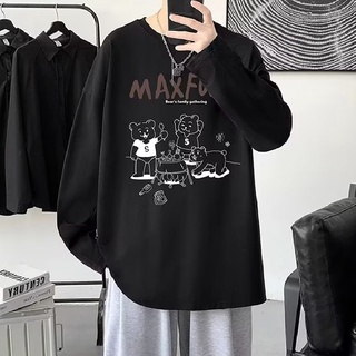 Áo Thun Tay Dài Dáng Rộng In Họa Tiết Gấu Hoạt Hình Thoải Mái Thời Trang Cho Nam Và Nữ size M-5XL