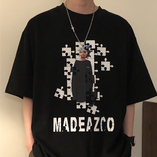 Áo Thun Tay Ngắn Cổ Tròn In Họa Tiết Hoạt Hình Phong Cách hip hop Đường Phố Hàn Quốc Cho Nam Và Nữ