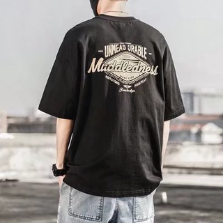 Áo thun tay ngắn dáng rộng in chữ phong cách Hàn Quốc thời trang cho nam size M-5XL