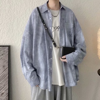 Áo Sơ Mi Tay Dài Dáng Rộng Nhuộm Màu Kiểu Hàn Quốc Cá Tính Cho Nam Size M-3Xl