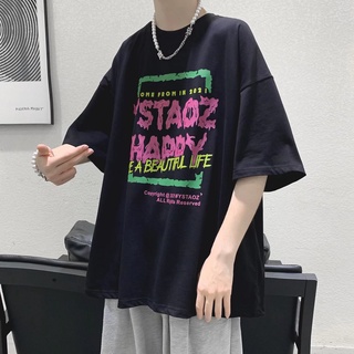 Áo Thun Nam Cổ Tròn Dáng Rộng In Chữ Phong Cách hip hop Đường Phố Hàn Quốc Cỡ M-5XL