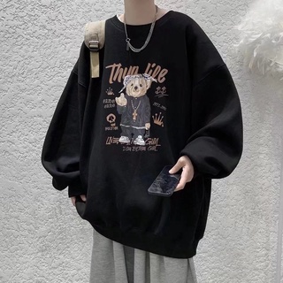 Áo sweater tay dài cổ tròn dáng rộng in họa tiết gấu hoạt hình phong cách Nhật Bản thời trang thu đông cho nam và nữ size M-5XL
