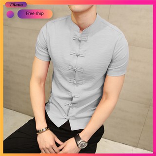 Áo Sơ Mi Nam Cổ Tàu Chất Vải Đũi Cổ Tàu Co Giãn Nhẹ TILANO
