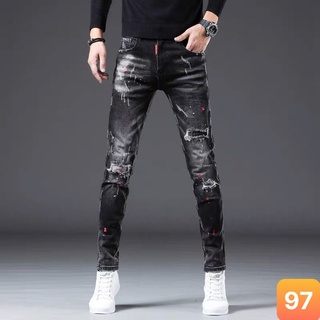 Quần jean nam màu xám đậm đen vảy sơn rách gối chất liệu bò jeans cao cấp co dãn 4 chiều đẹp form rin skinny LAVADO17