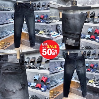 Quần jean đen trơn L.V nam đen bạc,Quần bò hoạ tiết thêu L.V wash màu khói bạc