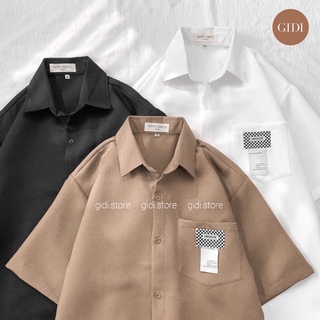 Áo sơ mi TÚI GIDI nhung gân phối phong cách Hàn Quốc Unisex NamNữ - sơ mi tay ngắn kiểu cá tính, vải nhung dày dặn GIDI