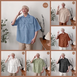 Áo Sơ mi RENI Nam Nữ tay lỡ Unisex 2 túi - vải nhung tăm mềm mịn form rộng OVERSIZE vải mềm, thoáng mát không nhăn