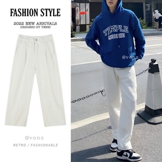 Quần jean VENNI nam nữ ống rộng quần kaki dáng suông màu trắng - VN23