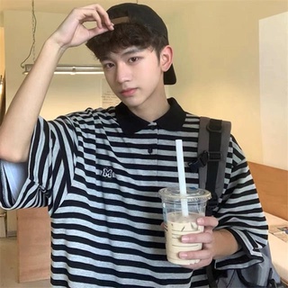 Áo polo Ngắn Tay Dáng Rộng Họa Tiết Sọc Thời Trang Theo Phong Cách Nhật Bản Dành Cho Nam