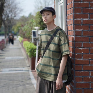 Áo Thun Cotton Tay Ngắn Cổ Tròn Dáng Rộng Họa Tiết Kẻ Sọc Thời Trang Mùa Hè Cho Nam