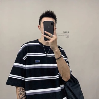 AMOI Áo Thun Tay Ngắn Dáng Suông Kẻ Sọc Ngang Dễ Phối Đồ Hợp Thời Trang Phong Cách Hàn Quốc Cho Nam